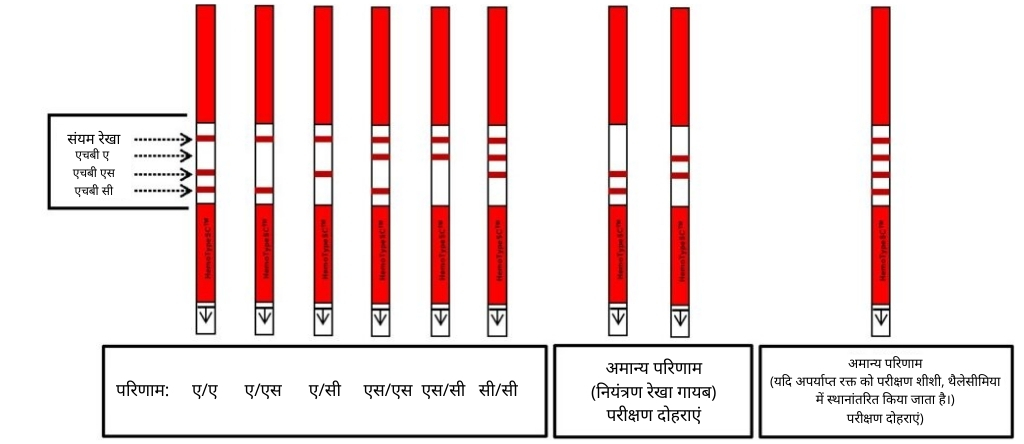 हेमोटाइपएससी™ हीमोग्लोबिन फेनोटाइप्स एचबीएए (सामान्य), एचबीएसएस और एचबीएससी (सिकल सेल रोग), एचबीसीसी (हीमोग्लोबिन सी रोग), और एचबीएएस और एचबीएसी (वाहक या विशेषता) को निर्धारित करने के लिए पॉइंट ऑफ़ केयर प्रदान करता है।